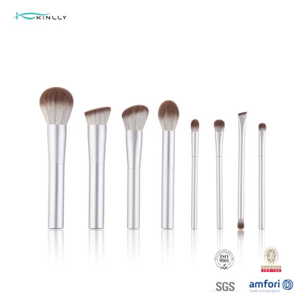 8pcs OEM ODM Travel Makeup Brush Set White Aluminium Handle Images |